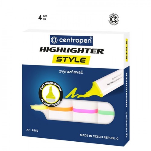 Набор текстовыделителей Style 4 флуоресцентных цвета, 1-4,6мм,белый корпус, европодв.