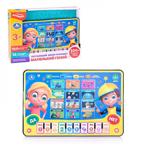 Обучающий мини-планшет. Пианино.Маленький гений (300 вопросов,песен,звуков) на бат., в коробке
