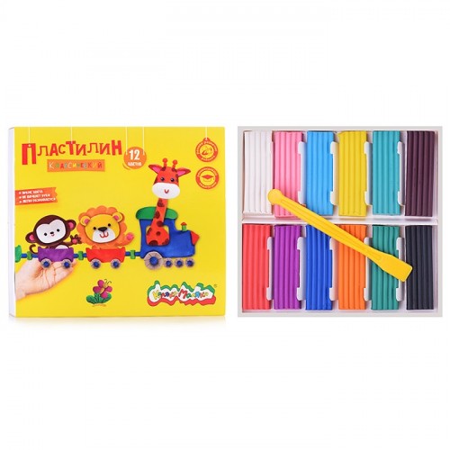 Пластилин 12 цв. 240 г со стеком с УФ-лаком