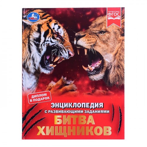 Энциклопедия с развивающими заданиями. Битва хищников. М. А. Рыклин. 48 стр.